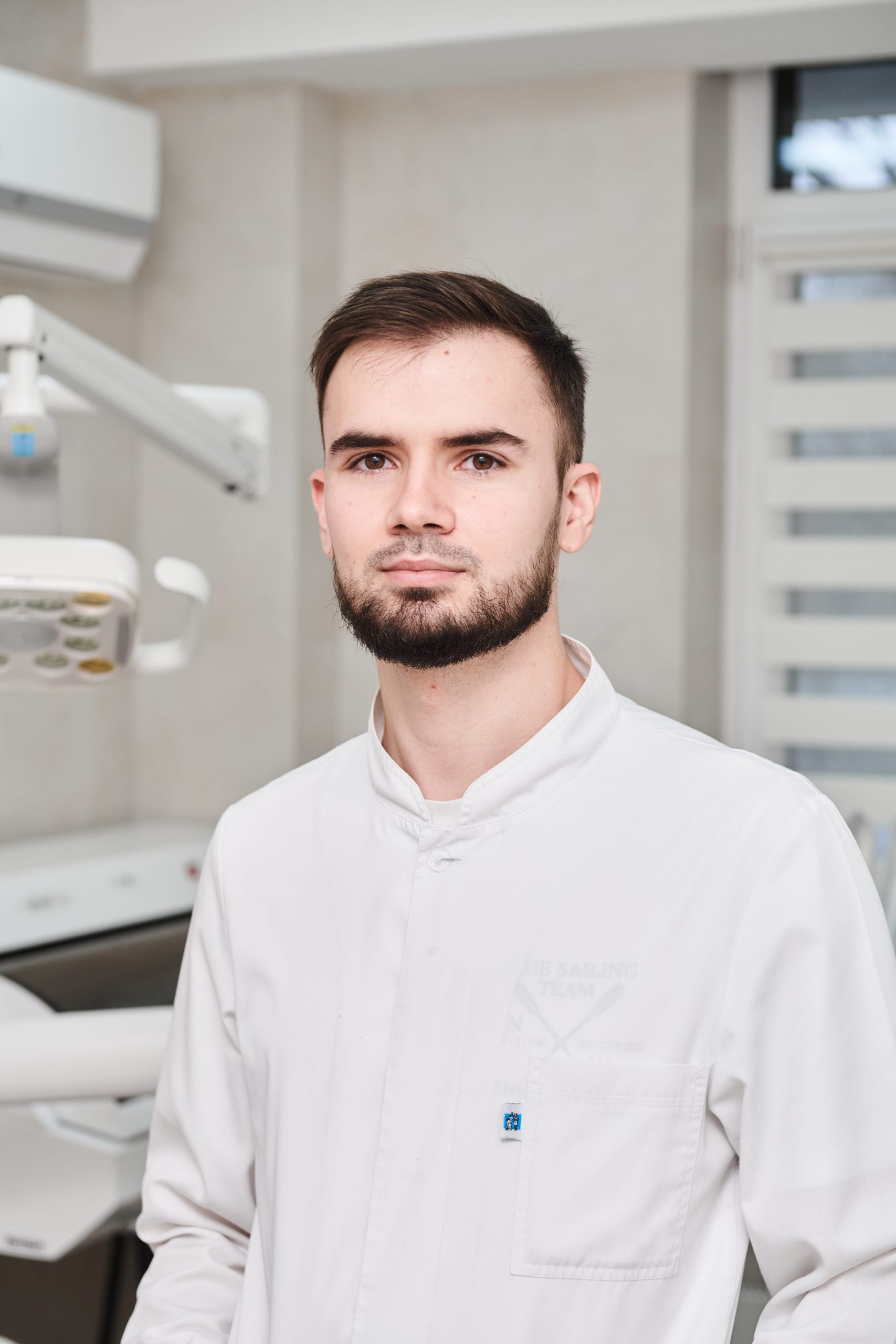 Лікар займається лікуванням карієсу та його ускладнень постійних зубів, лікуванням каналів за сучасними протоколами, також лікар займається типовим видаленням зубів і протезуванням одиночними коронками після ендодонтичного лікування